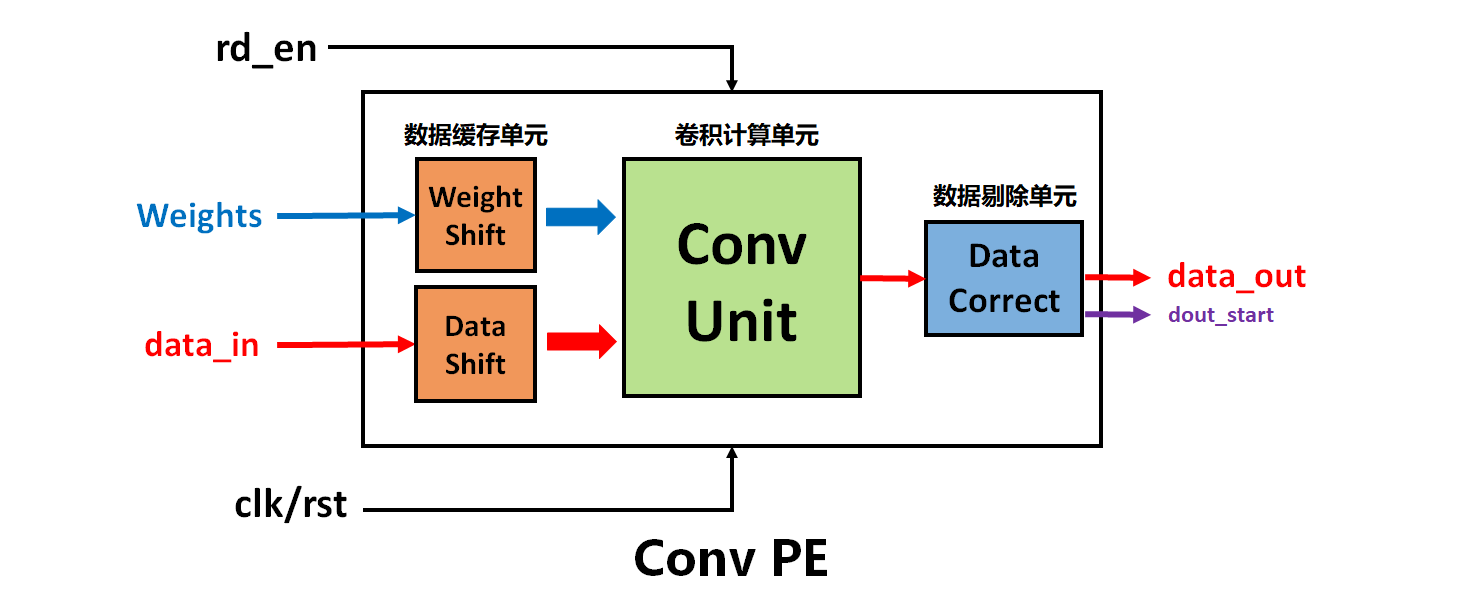 首先,整个卷积计算电路单元模块化设计如图4所示。它包括数据缓存模块、卷积计算模块以及数据剔除模块。
